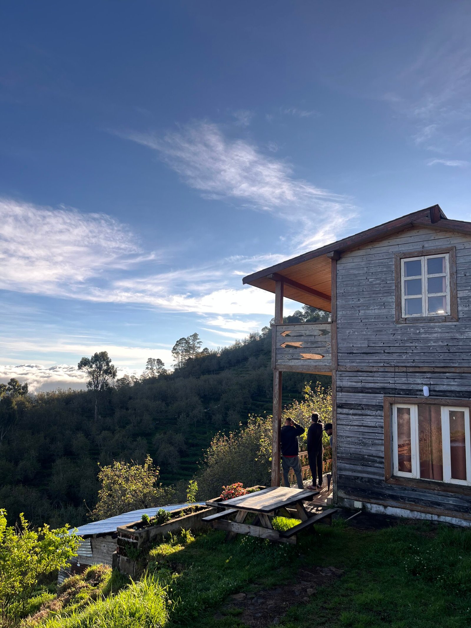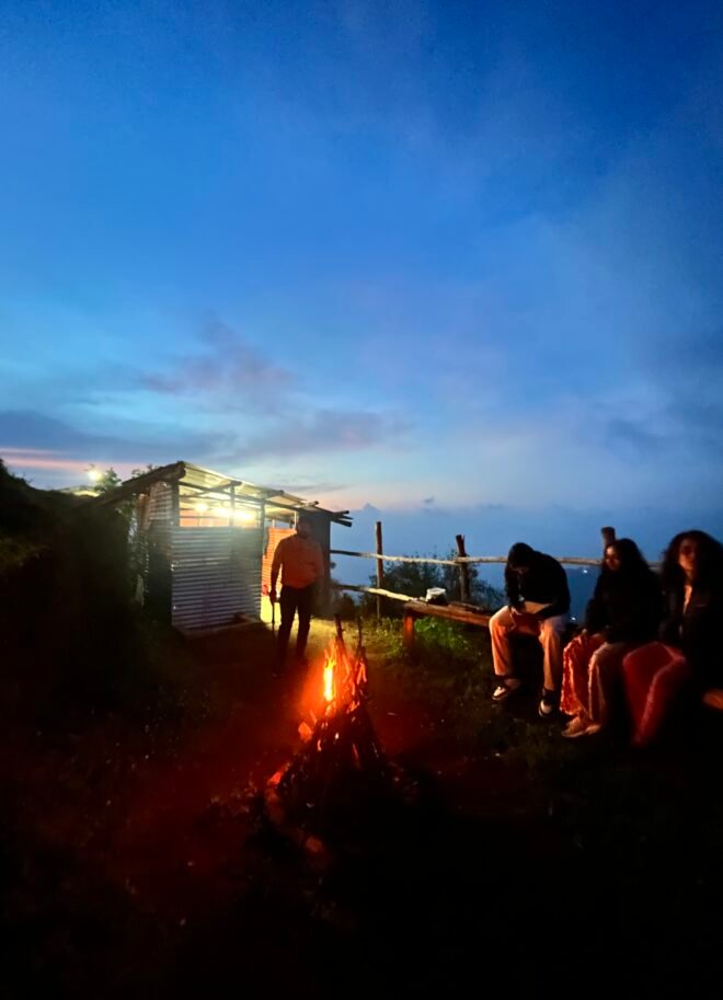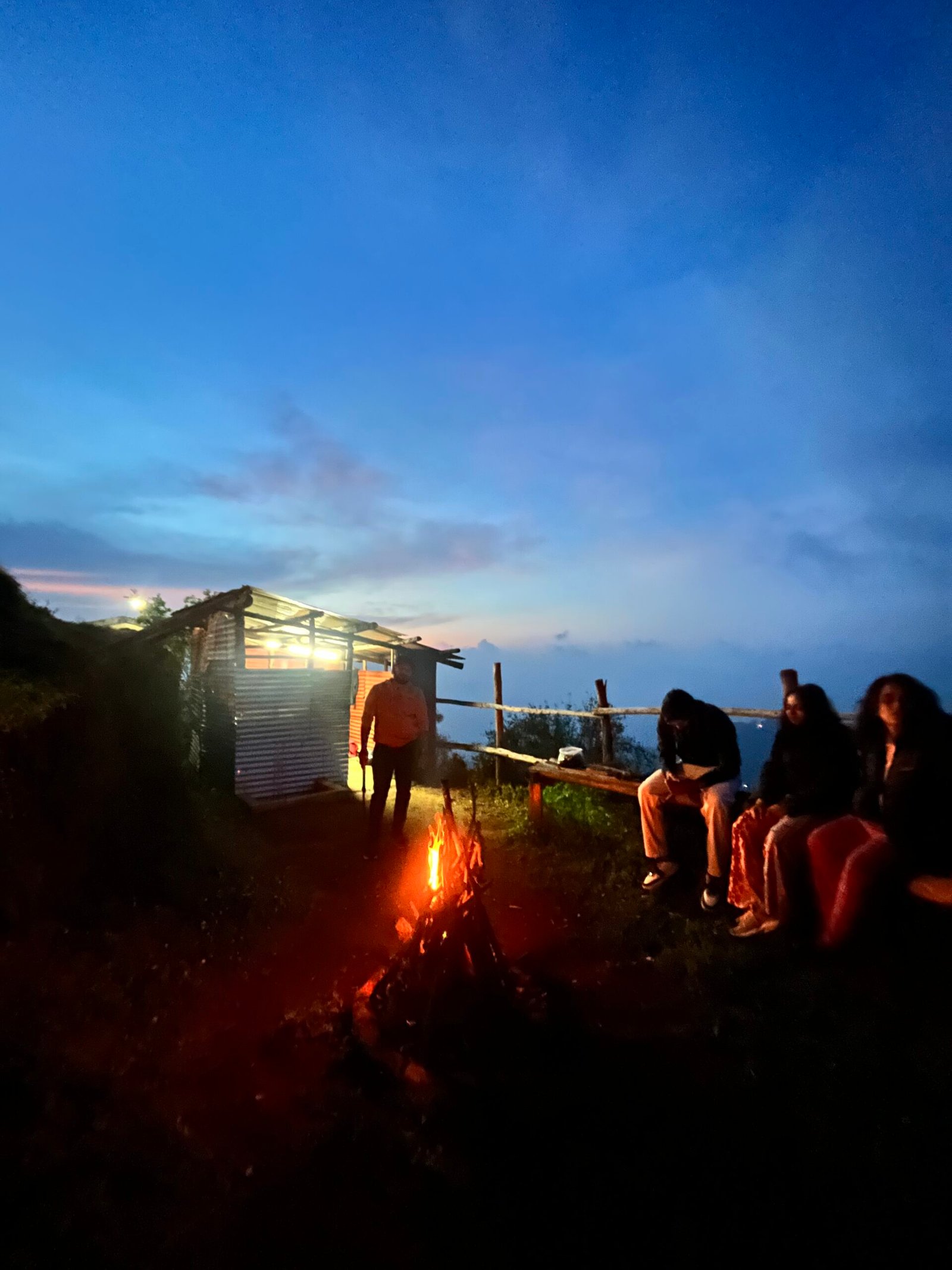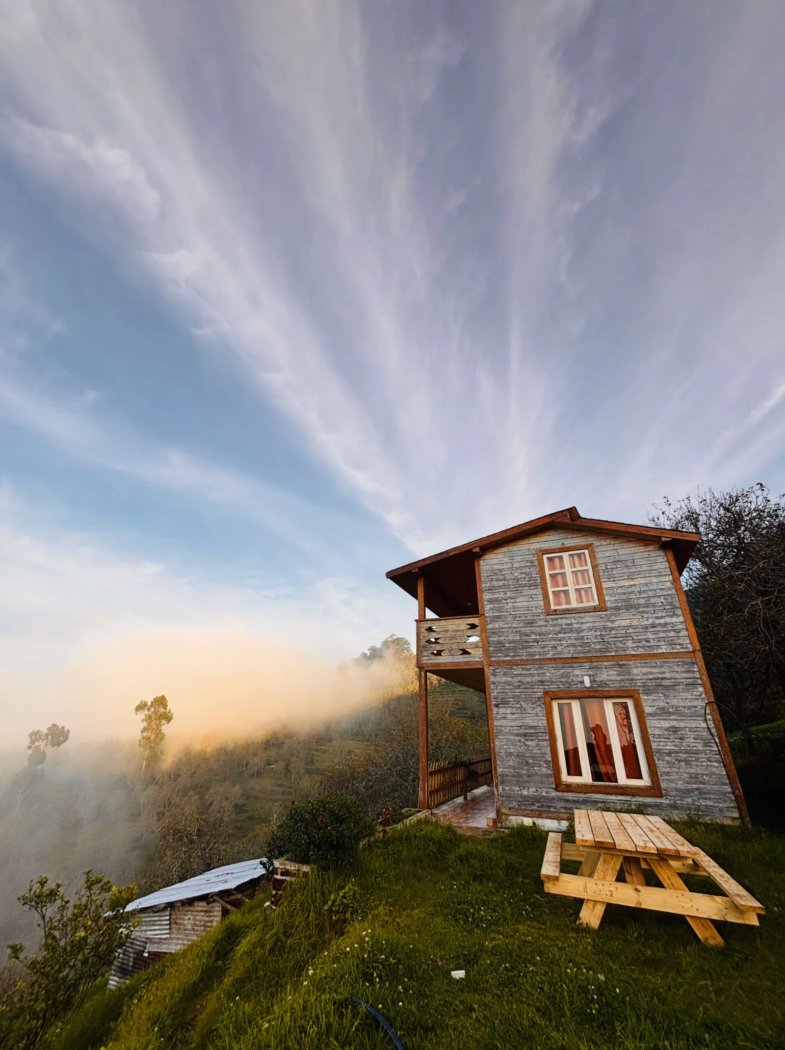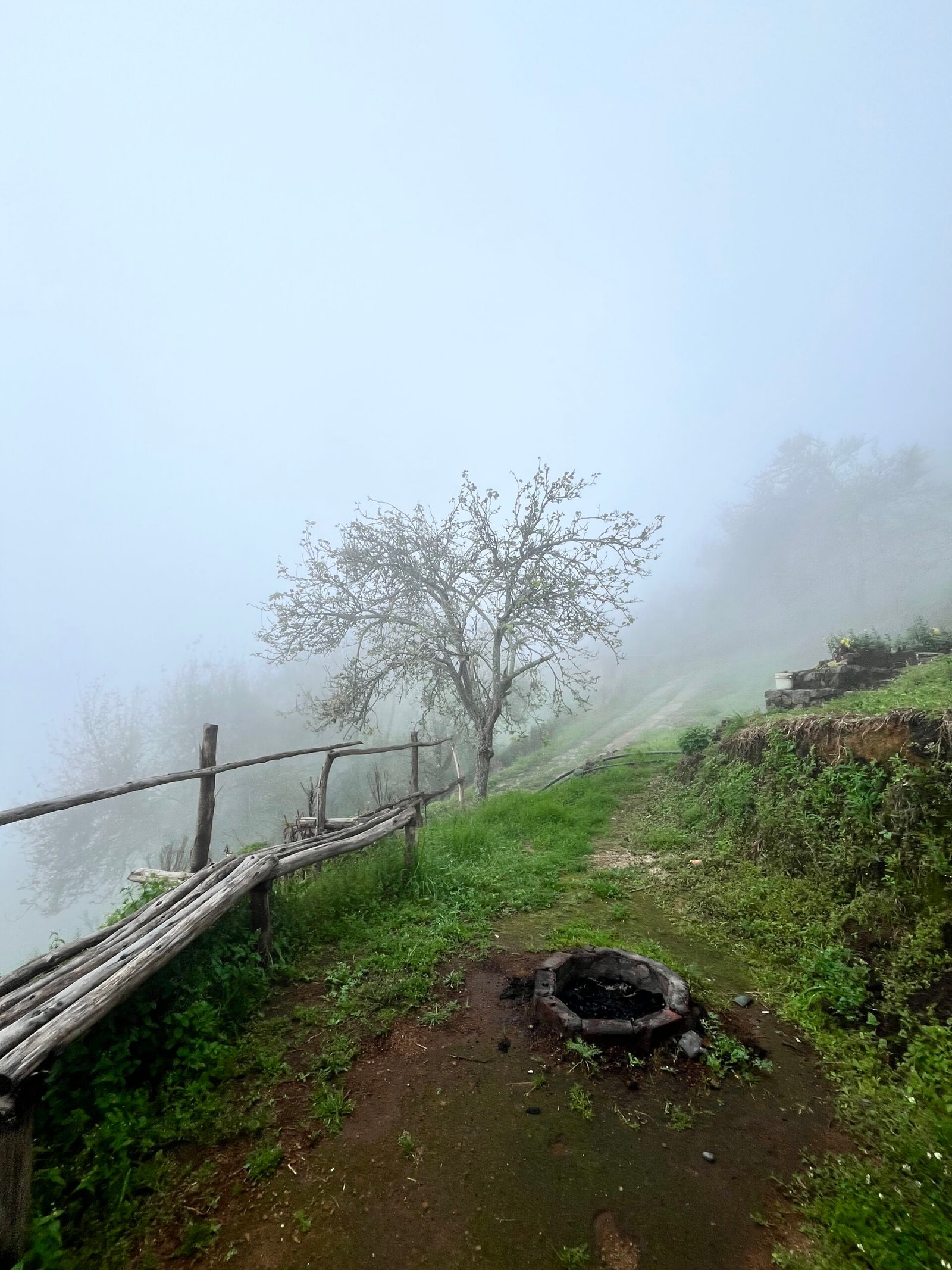 Home to 700+ Sabarjilli pear trees, wildflowers and crops like potato & broccoli, this farm floats in mist. Clouds come down to your woodhouse, birds sing at dawn, and you wake to a vast, cloud-wrapped valley. Tent stays, cozy wood houses, campfire, candlelight dinners and barbecues are available.