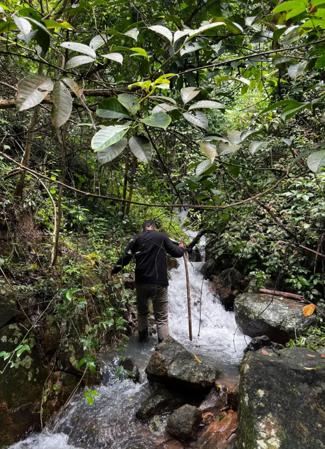 A unique mountaintop estate overlooking Mambuzhathurayar Dam with the Arabian Sea on the horizon. Two waterfalls to enjoy, three trekking spots (sunrise, waterfall, viewpoint), and thriving spice, coconut, medicinal plant, areca & fish farming. Rustic farmhouse plus three tent stays. Birdsong greets the morning; evenings bring one of the most unforgettable sunsets youβll ever see.